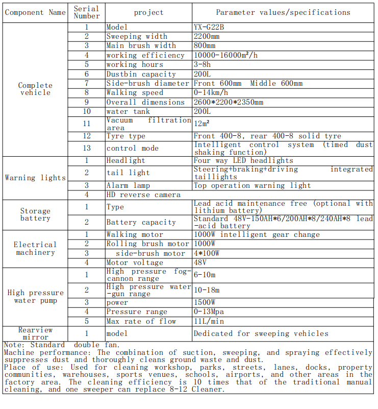 Τόπος χρήσης: Χρησιμοποιείται για τον καθαρισμό του εργαστηρίου, των πάρκων, των δρόμων, των λωρίδων, των αποβάθρων, των ακινήτων, των αποθηκών, των αθλητικών χώρων, των σχολείων, των αεροδρομίων και άλλων περιοχών της περιοχής. Η απόδοση καθαρισμού είναι 10 φορές εκείνη του παραδοσιακού χειροκίνητου και ένας σαρωτής μπορεί να αντικαταστήσει το καθαριστικό 8-12.