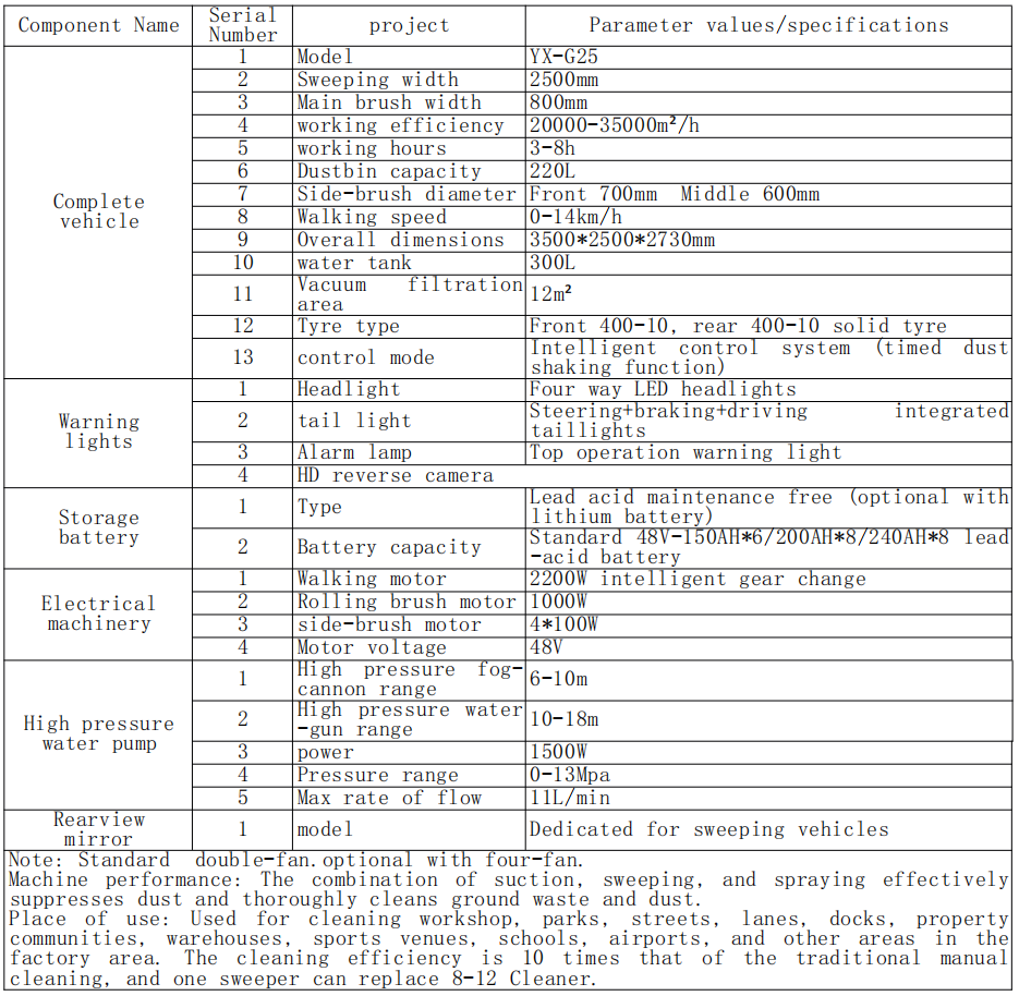 Τόπος χρήσης: Χρησιμοποιείται για τον καθαρισμό του εργαστηρίου, των πάρκων, των δρόμων, των λωρίδων, των αποβάθρων, των ακινήτων, των αποθηκών, των αθλητικών χώρων, των σχολείων, των αεροδρομίων και άλλων περιοχών της περιοχής. Η απόδοση καθαρισμού είναι 10 φορές εκείνη του παραδοσιακού χειροκίνητου και ένας σαρωτής μπορεί να αντικαταστήσει το καθαριστικό 8-12.