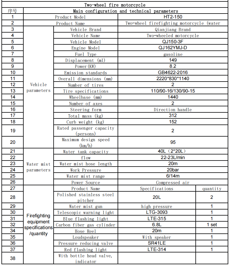 Το σώμα του οχήματος είναι μικρό (συνήθως μήκους περίπου 2 μέτρων και πλάτος περίπου 0,8 μέτρων) και μπορεί εύκολα να μεταφέρει σε στενούς δρόμους, σοκάκια σε περιοχές της Παλαιάς Πόλης, πεζούς δρόμους, γραφικούς ορεινούς δρόμους, αστικά χωριά και άλλες περιοχές που δεν μπορούν να φτάσουν τα μεγάλα πυροσβεστικά οχήματα, επίλυση του προβλήματος της κάλυψης πυροπροστασίας στο "τελευταίο μίλι".